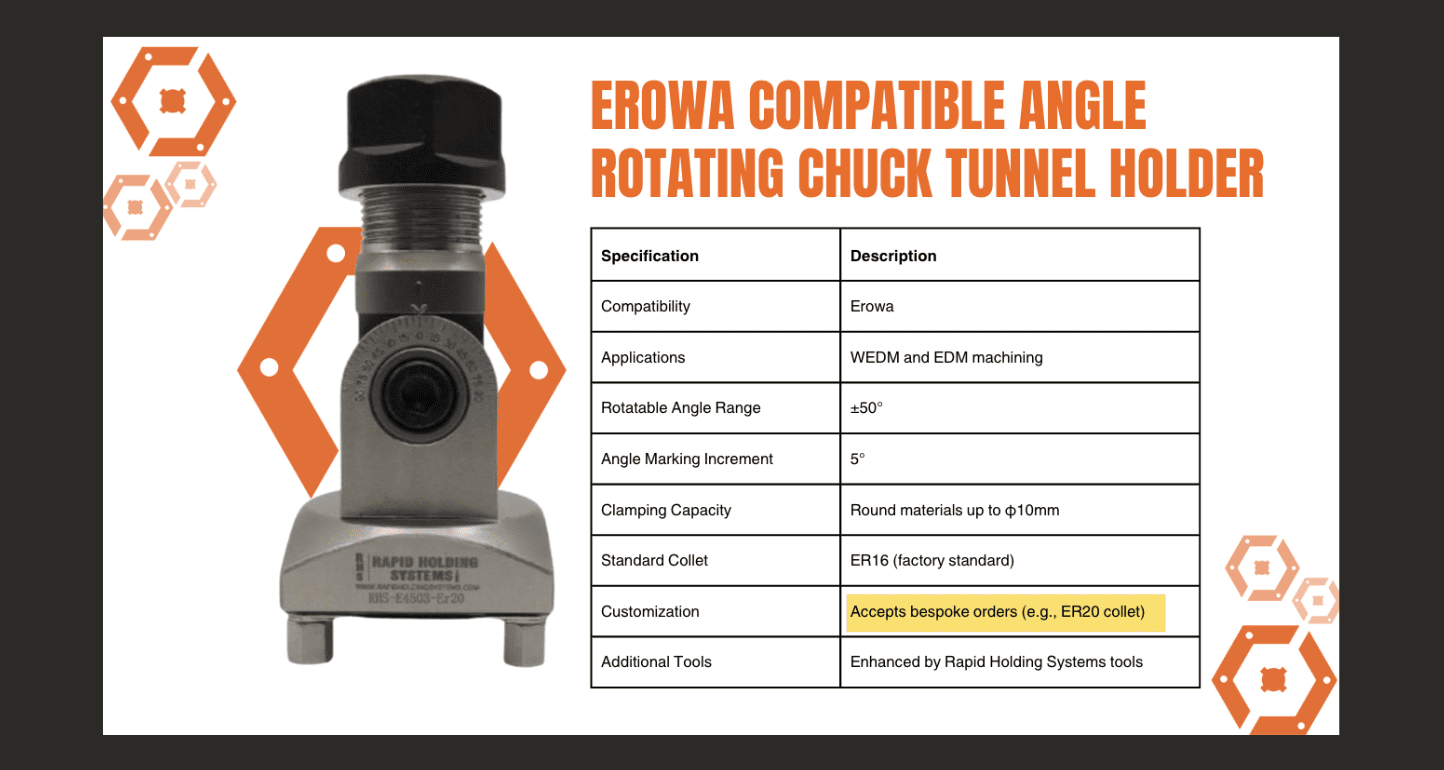 The Angled Collet Holder isn’t just a tool—it’s a productivity enhancer. By addressing the most common pain points in EDM workflows, it helps operators work faster, achieve better results, and reduce material waste.