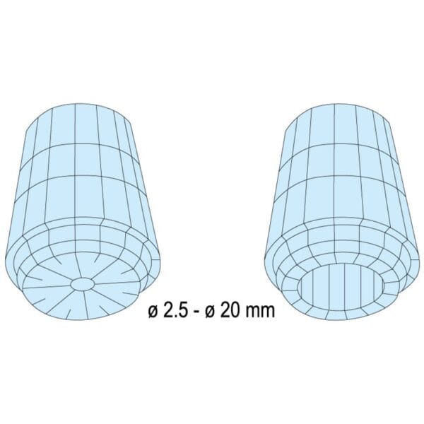 19 collet chucks from ø 2.5 mm to ø 20 mm.