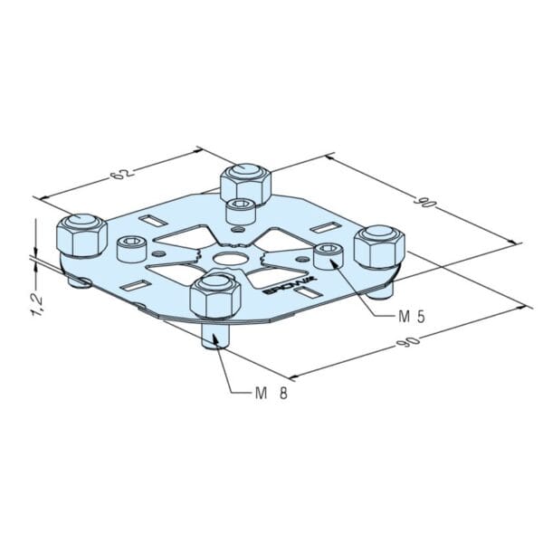 4 supporting feet M8 and 4 x M5 screws per plate.