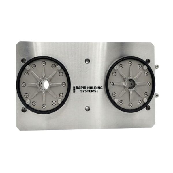 Erowa Er-036800 compatible 2 in 1 Integrated chuck system. RHS-E036800 integrates 2 ER-036800 MTS IntegralChuck M-P/A to make the pallet table. The pallet table works same as Erowa 800635R0 Fixturing Table.