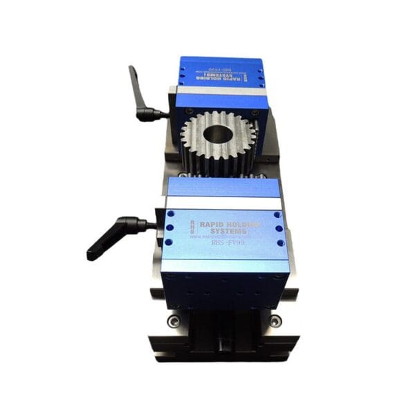 RHS Self Centering Vise for Flexible Tooling and irregular shapes is a centering vice composed of 2 pcs of flexible tooling fixtures. The pins on fixtures are flexible and able to simulate the figure of a complex workpiece easily when clamping it. The application of this centering vise is for CNC machining, measurement in the laboratory, and assembly. The air connection on the lateral side is a function for keeping fixtures from swarfs after machining.