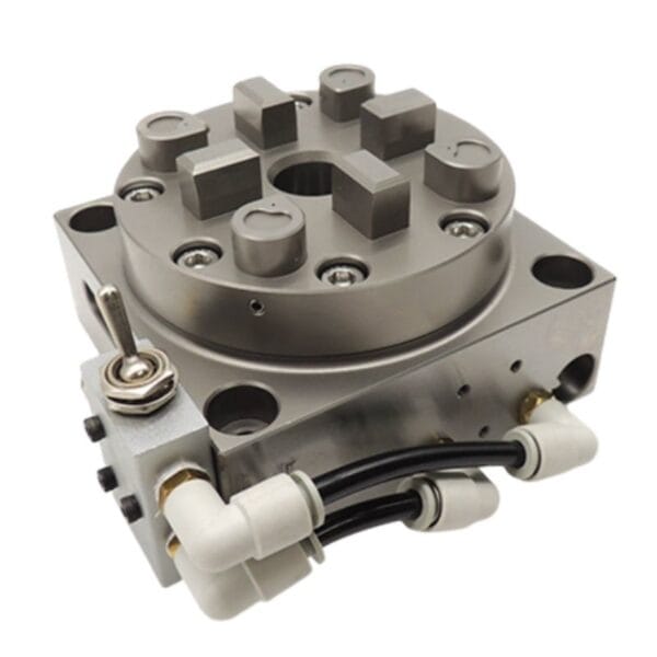 System 3R 3R-610.46-3 compatible Pneumatic table chuck MacroHighPerformance. RHS version 3R-610.46-3 comes with integral air unit on the side. Pneumatic chuck locked/opened with air gun.